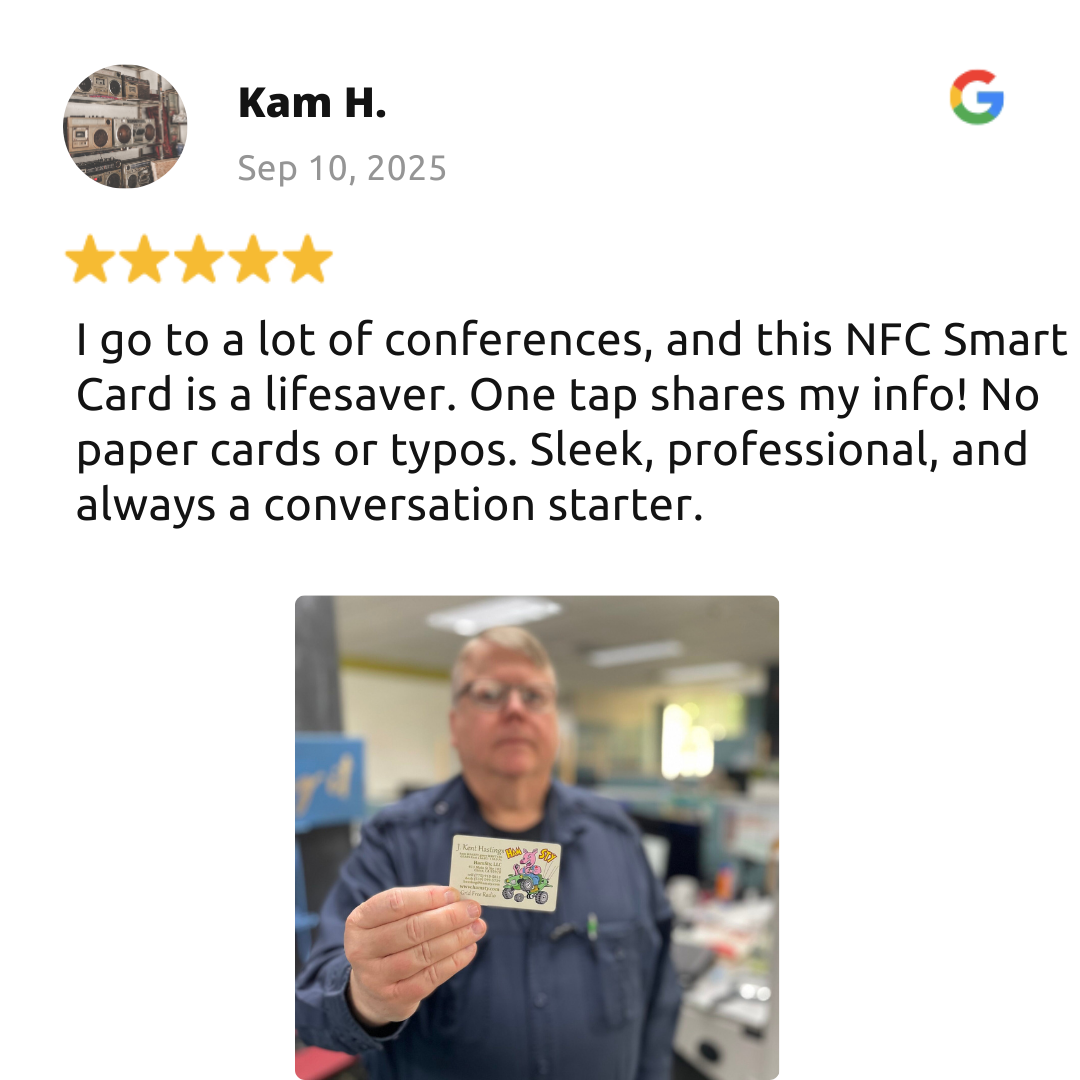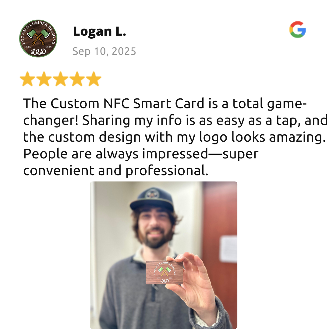 The Custom NFC Smart Card has a built-in NFC chip—the same tech used in tap-to-pay.