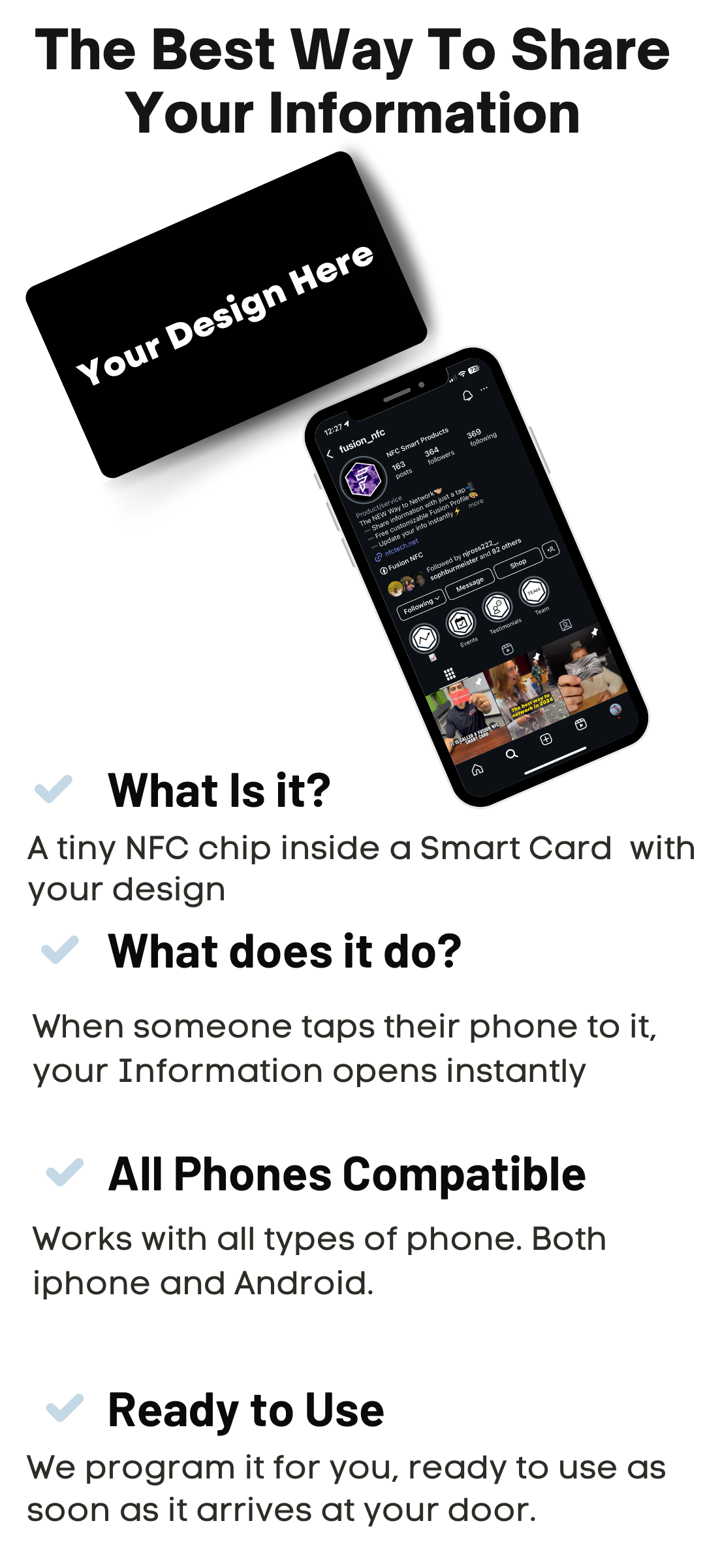 Just tap your Smart card to a phone and instantly open your Information.