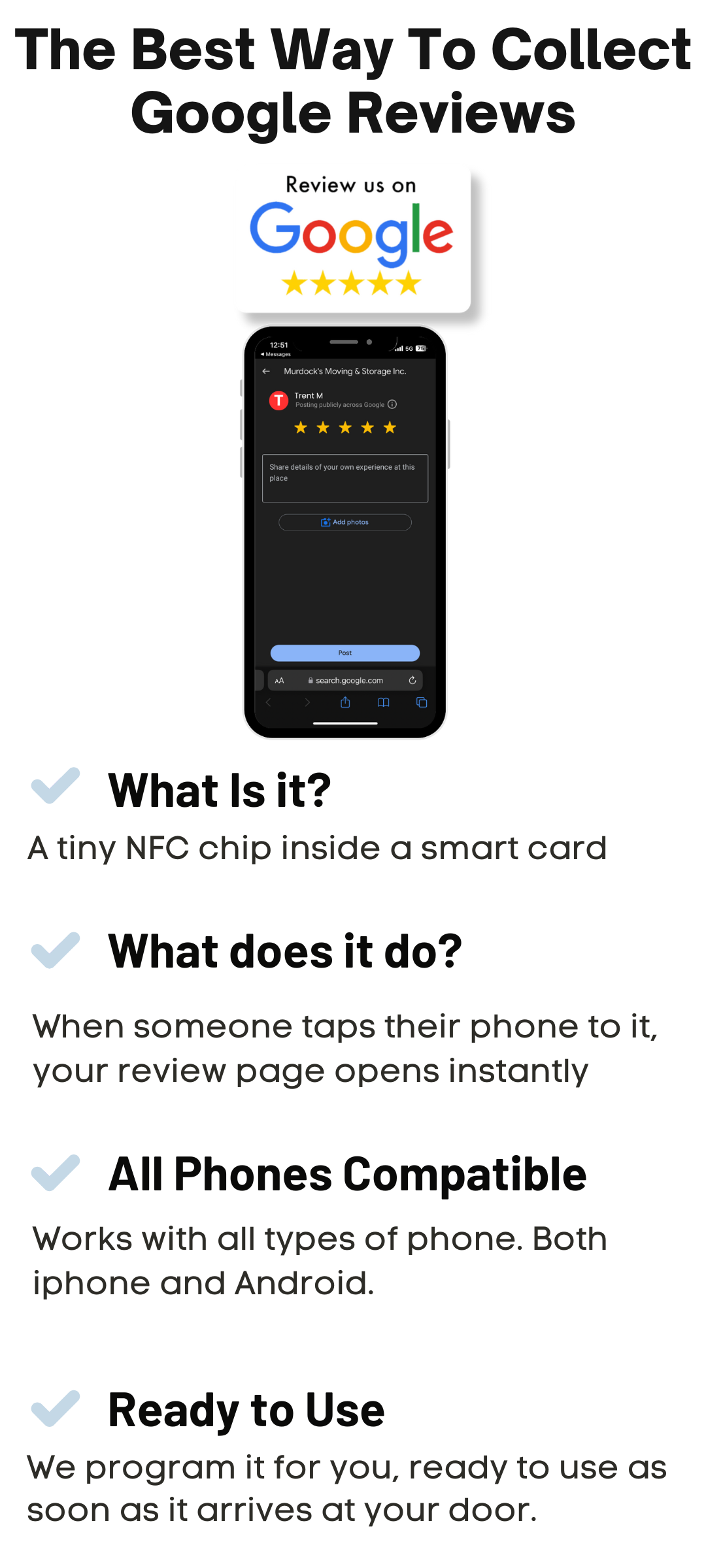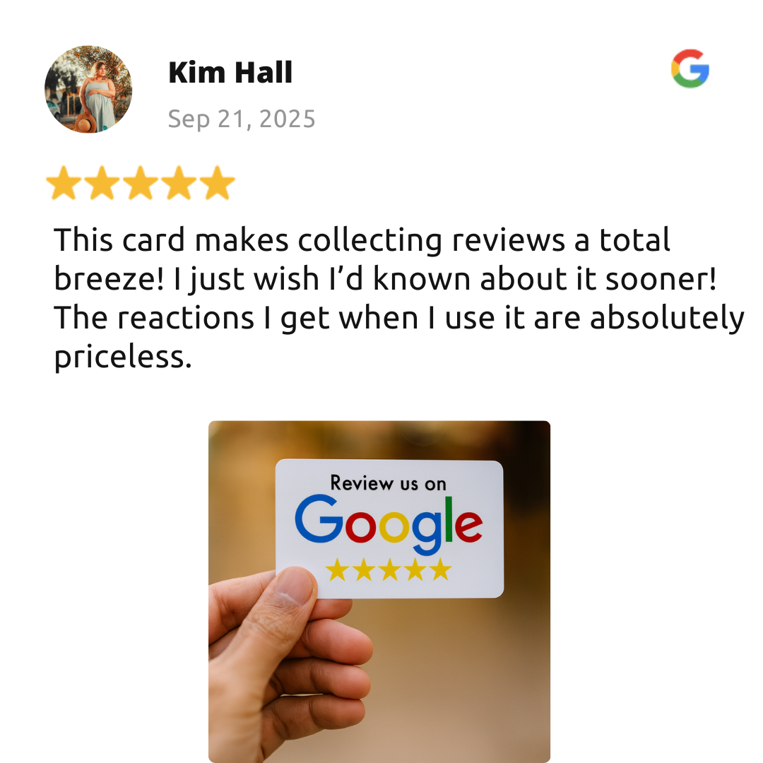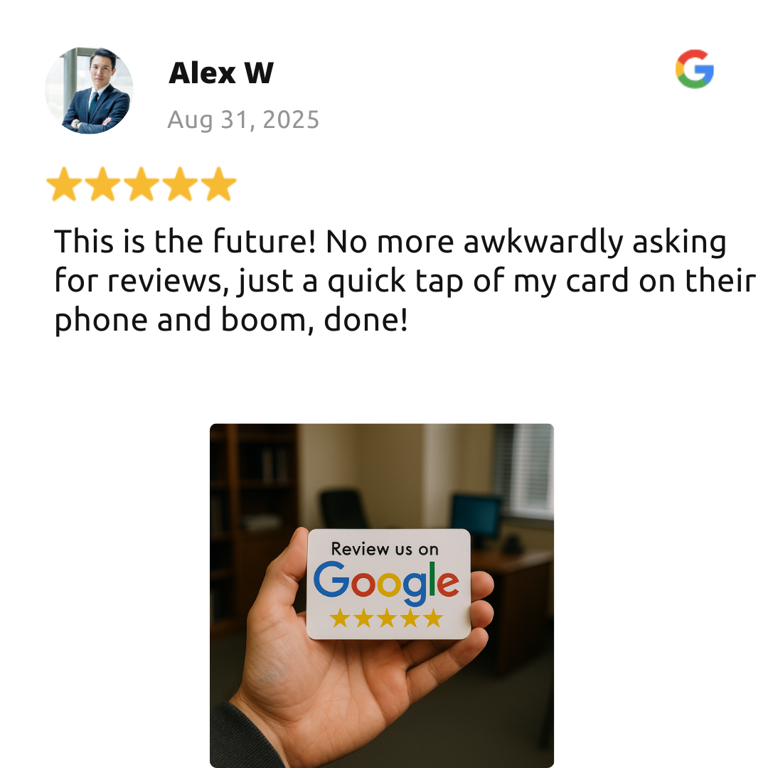Just tap it to a compatible phone, and your Google Review page opens instantly.
