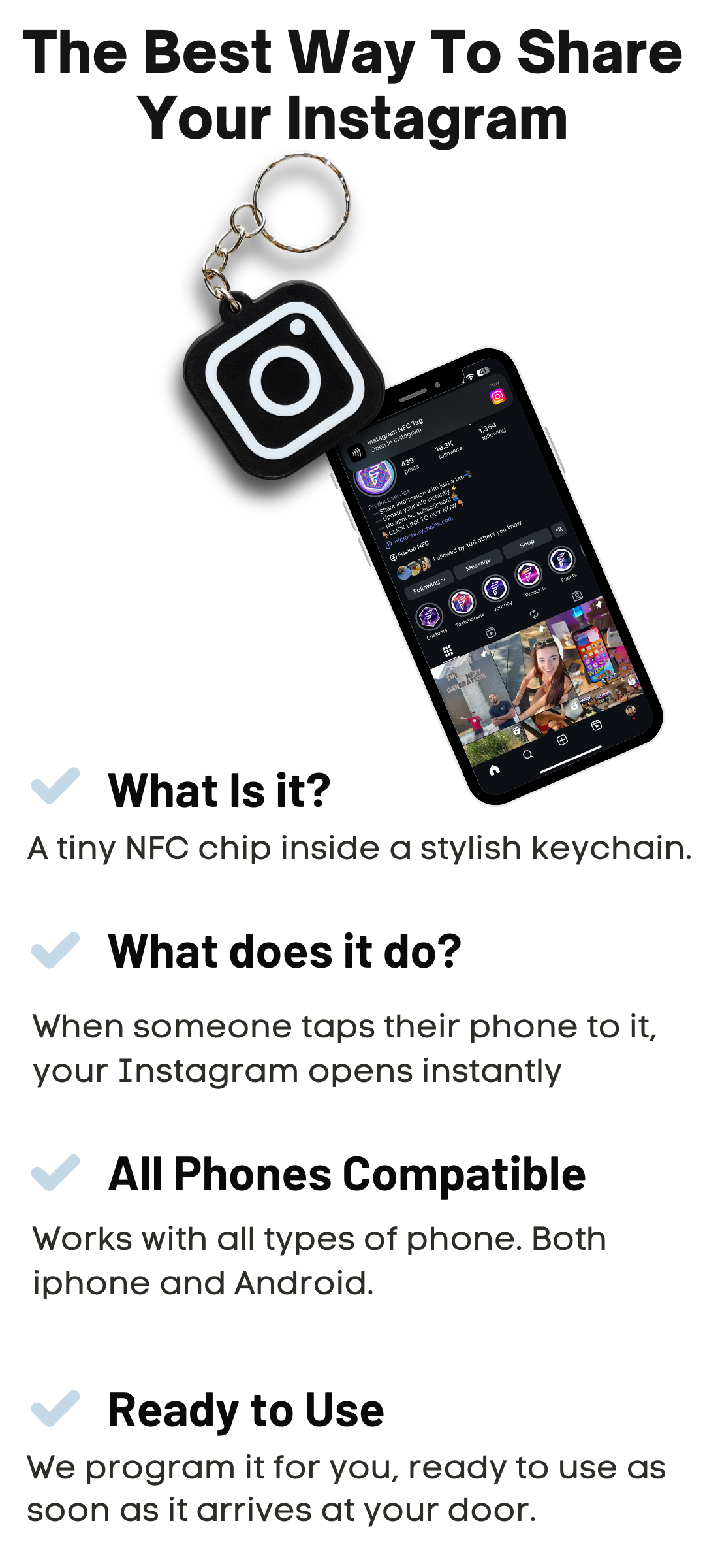 Just tap your keychain to a phone and instantly open your Instagram.