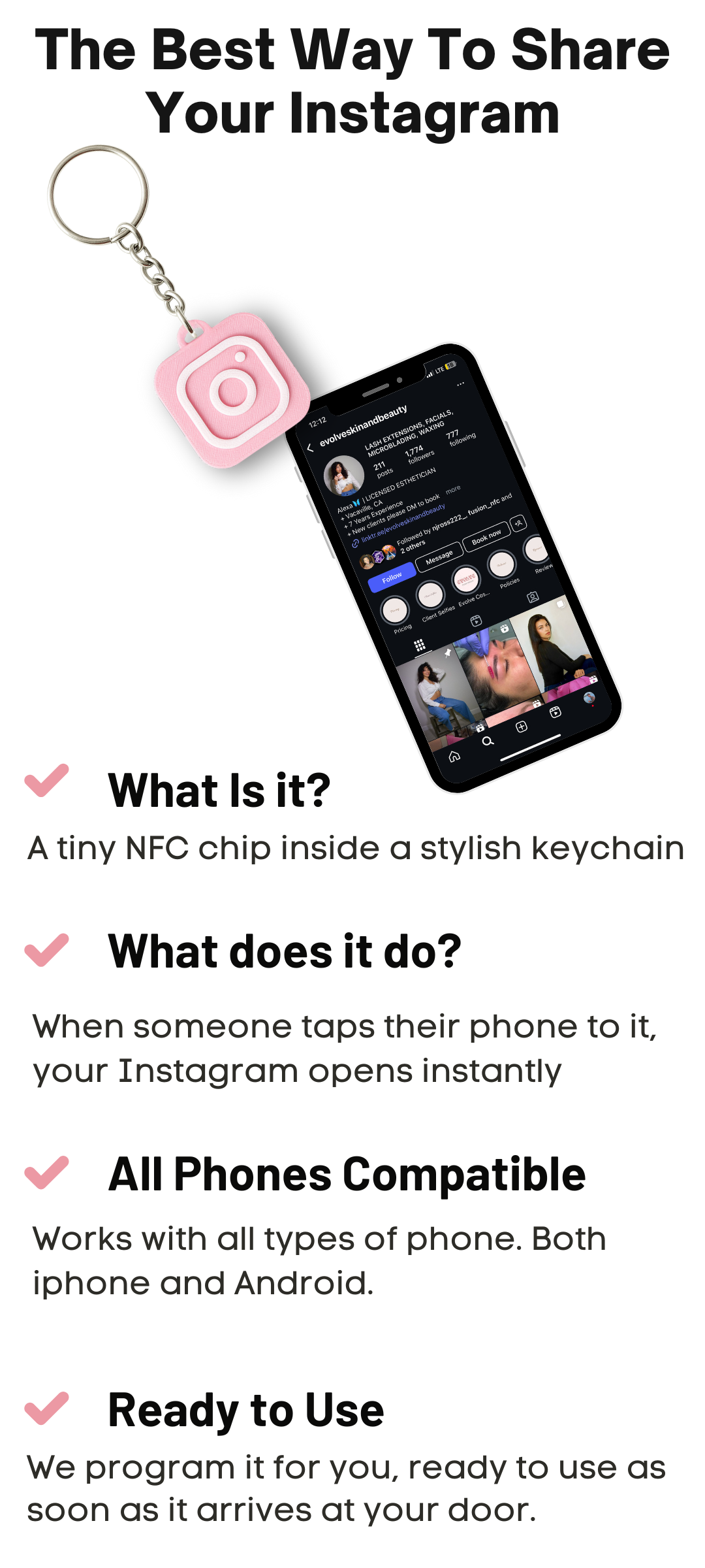 Just tap your keychain to a phone and instantly open your Instagram.